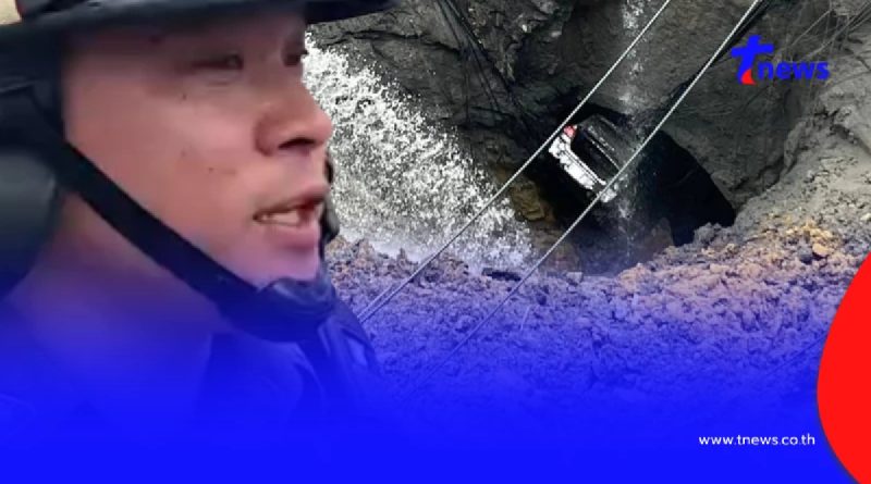 รู้แล้วทะเบียนรถ คันที่ตกลงไป หลังเกิดเหตุ ถนนทรุดหน้าสน.สามเสน