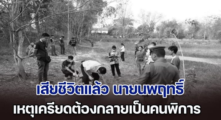 ที่เกิดเหตุ พบผู้เสียชีวิต ชื่อ นายนพฤทธิ์ ศรีตานาค อายุ 29 ปี อยู่ ต.ภูกระดึง อ.ภูกระดึง จ.เลย ผู้พิการทางขาซ้าย ใช้เชือกแขวนคอกับต้นไม้ เจ้าหน้าที่ตำรวจกู้ภัยฯ ปลดเชือกนำร่างลงมา แพทย์ตรวจร่างกายไม่พบบาดแผลหรือร่องรอยถูกทำร้ายร่างกาย คาดว่า เสียชีวิตมาแล้ว 3 – 4 ชม.