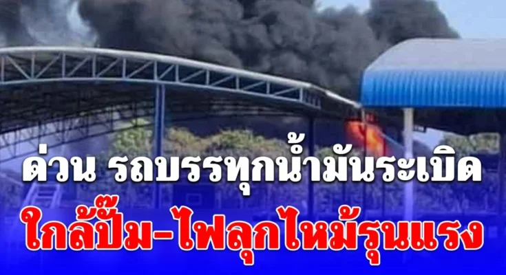 ครูสั่งอพยพนักเรียนวุ่น รถบรรทุกน้ำมันระเบิด ใกล้ปั๊ม-ไฟลุกไหม้รุนแรง