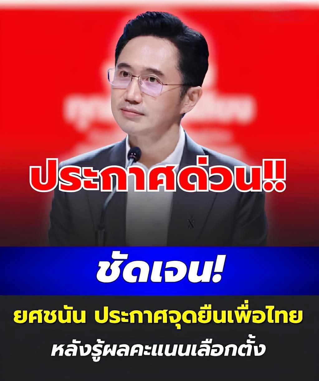 ชัดเจน! ยศชนัน ประกาศจุดยืนเพื่อไทย หลังรู้ผลคะแนนเลือกตั้ง