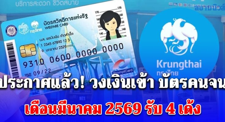 ประกาศแล้ว! วงเงินเข้า บัตรคนจน เดือนมีนาคม 2569 รับ 4 เด้ง รอบใหม่เตรียมทบทวนสิทธิลงทะเบียน