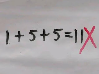 เมื่อเผชิญกับคำถามข้างต้น ลูกของผู้ ปกครองคนนี้จึงคิดและคำนวณได้ว่า 1 + 5 + 5 = 11 ซึ่งเมื่อผู้เป็นพ่อเห็นคำตอบนี้ก็ แน่ใจว่าลูกทำถูกต้องแล้ว อย่างไรก็ดี วันรุ่ง ขึ้นครูกลับพบว่าคุณครูตรวจแล้ว “กากบาท” ในคำตอบข้อดังกล่าว ทำให้ลูก ของเขาไม่ได้คะแนนในส่วนนี้