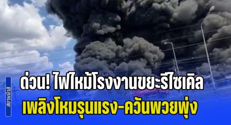 ด่วน! ไฟไหม้โรงงานขยะรีไซเคิล เพลิงโหมรุนแรง-ควันพวยพุ่ง หวั่นลามไปยังปั๊มน้ำมันที่อยู่ใกล้