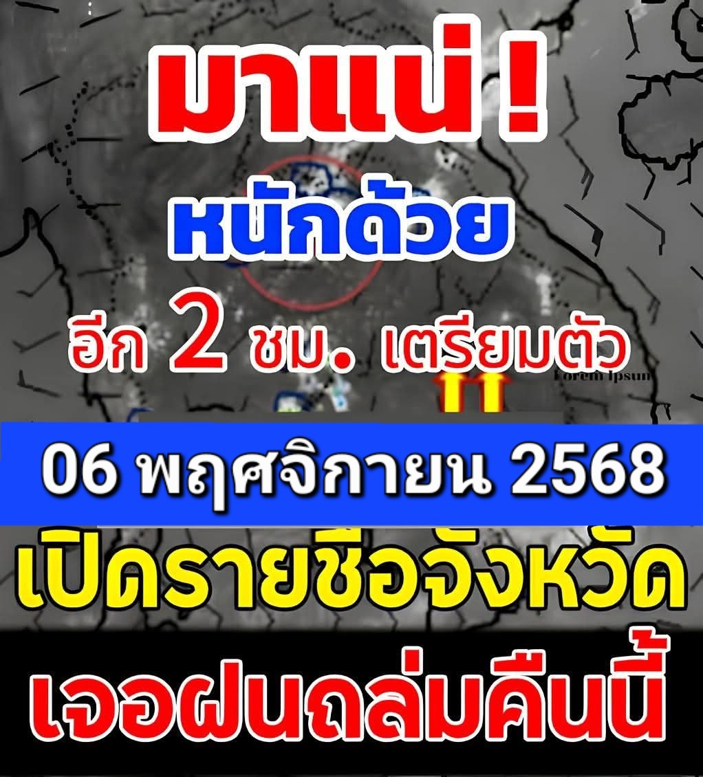 06 พฤศจิกายน 2568 พยากรณ์อากาศ 24 ชั่วโมงข้างหน้า บริเวณภาคใต้มีฝนตกหนักเกิดขึ้นได้บางพื้นที่ โดยเฉพาะจังหวัดเพชรบุรี ประจวบคีรีขันธ์ ชุมพร ระนอง และพังงา ส่วนประเทศไทยตอนบนมีฝนน้อย เนื่องจากร่องมรสุมพาดผ่านภาคใต้ตอนบน อ่าวไทย และภาคตะวันออก เข้าสู่หย่อมความกดอากาศต่ำบริเวณชายฝั่งประเทศเวียดนามตอนล่าง