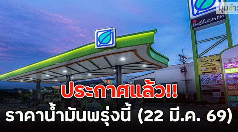 May be an image of text that says 'มมข่าว 0 Nuato thchanin inthanin D にだド 可本屋式 스브 อพบกรเงด ชีกอนว だ ประกาศแล้ว!! กาศ แล้ว!! ราคาน้ำ ราคาน้ำมันพรุ่งนี้ มันน ราคา น้ำ (22 มี.ค. 69)'