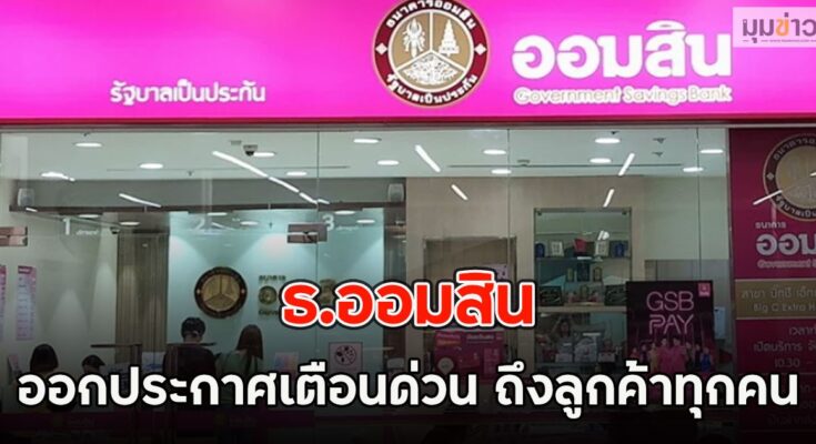 ธ.ออมสิน ออกประกาศเตือนด่วน ถึงลูกค้าทุกคน