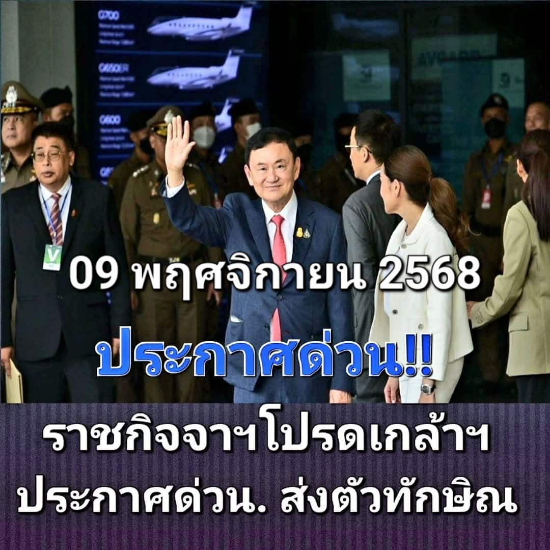 ด่วน!! ราชกิจจาฯโปรดเกล้าฯ ประกาศด่วน. ส่งตัวทักษิณ 09 พฤศจิกายน 2568