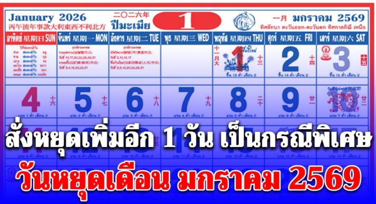 ครม. สั่งหยุดเพิ่มอีก 1 วัน เป็นกรณีพิเศษ ประกาศแล้ว วันหยุดเดือน มกราคม 2569